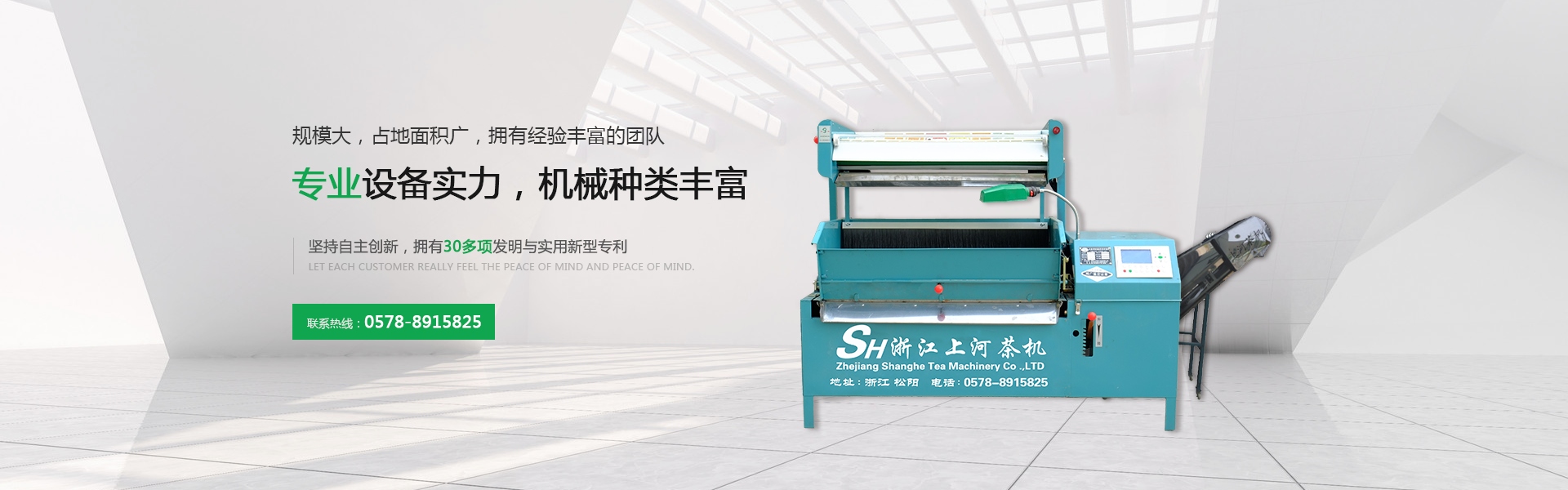 經(jīng)過(guò)多年的發(fā)展,浙江上河茶葉機(jī)械有限公司已成規(guī)模, 現(xiàn)占地面積13500多平方米,設(shè)備齊全。 主要產(chǎn)品有:6CCB系列全自動(dòng)智能扁茶機(jī)、6CL系列全自動(dòng)智能茶葉理?xiàng)l機(jī)、6CH系列茶葉輝干機(jī)等10多種機(jī)型。